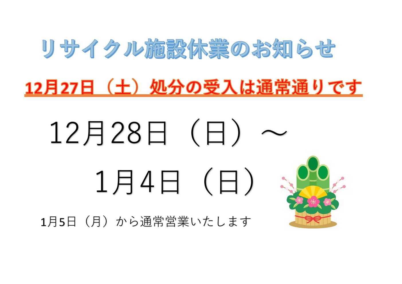 リサイクル施設年末年始休業のお知らせ (2025-12-08)