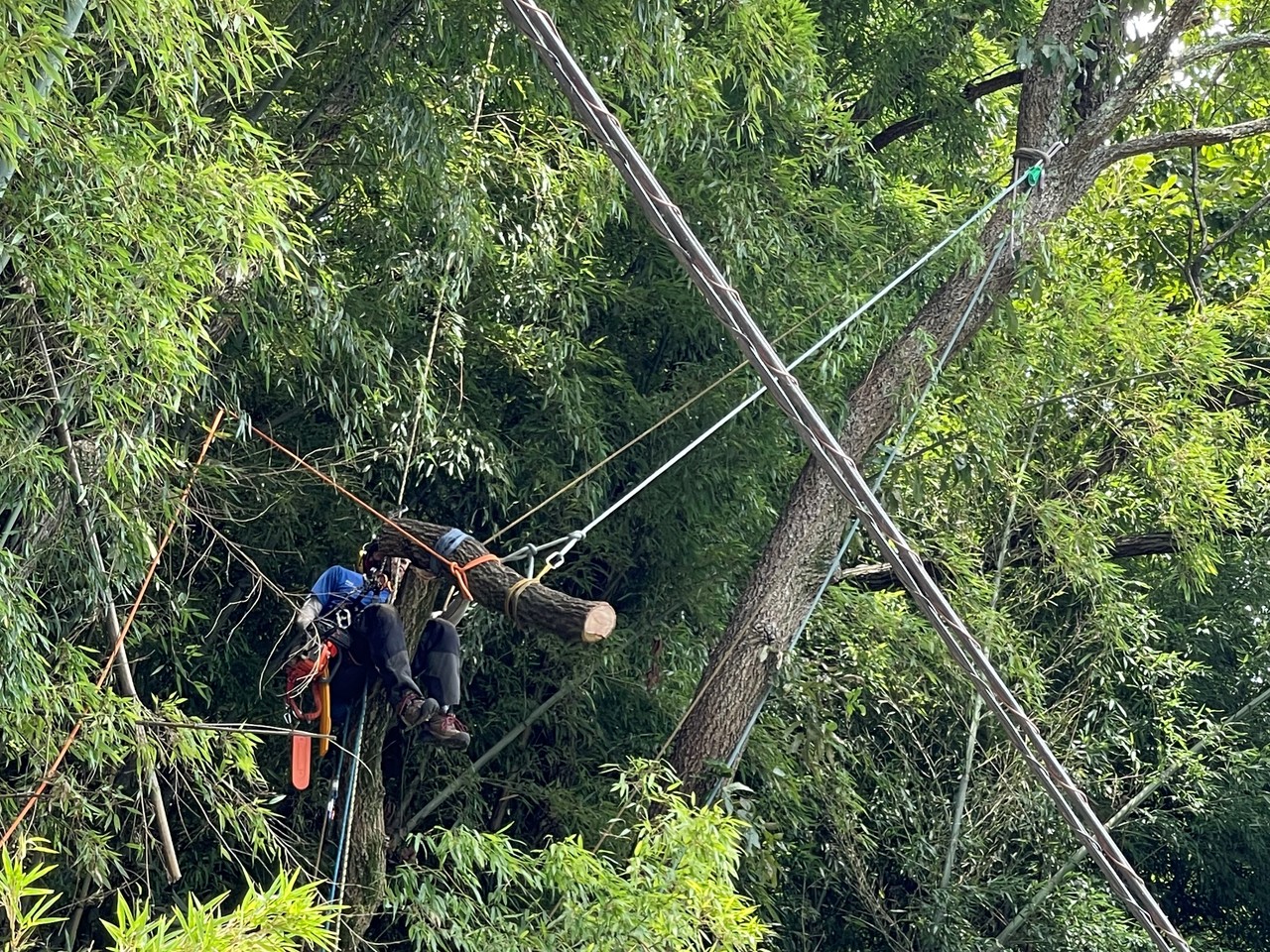 たくさんのロープを操り、人の昇り降りや切った木の運搬等を行います