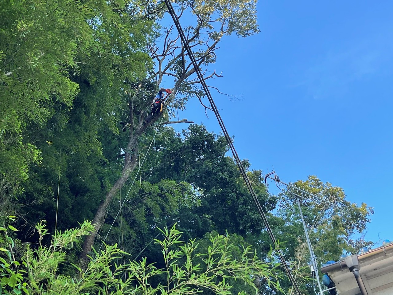 枯れた大木の枝は折れ、家の屋根を破壊してしまったことから、危険木の伐採のご相談をいただきました。