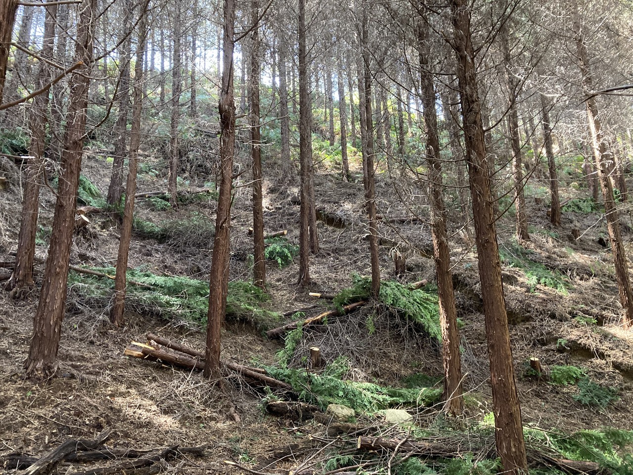 間伐作業をすることで、木と木の間隔のバランスが良くなり、新しいスペースをもらった木はどんどん大きくなります。